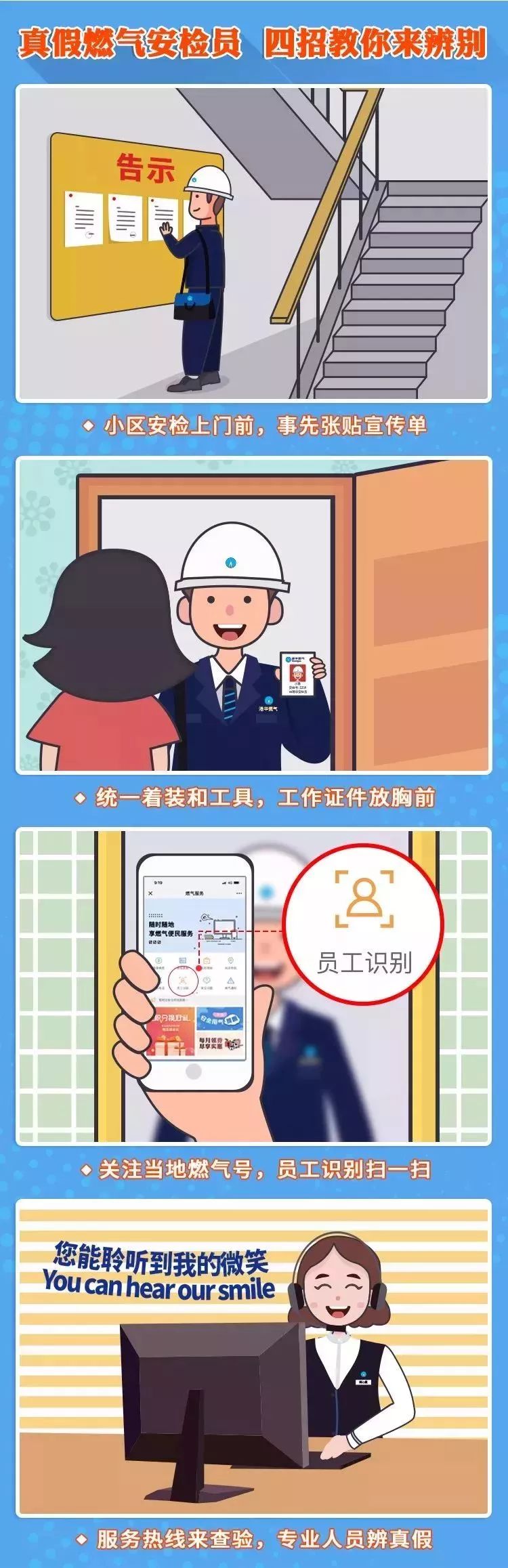 真假燃气安检员,四招迅速辨真伪。